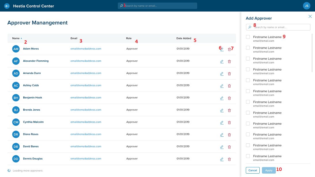 Welcome to the Hestia Control Center Integration - III (Approver Management) Challenge. In this challenge, we are looking for you to integrate new features in the existing Angular 2+ Application with the backend API.